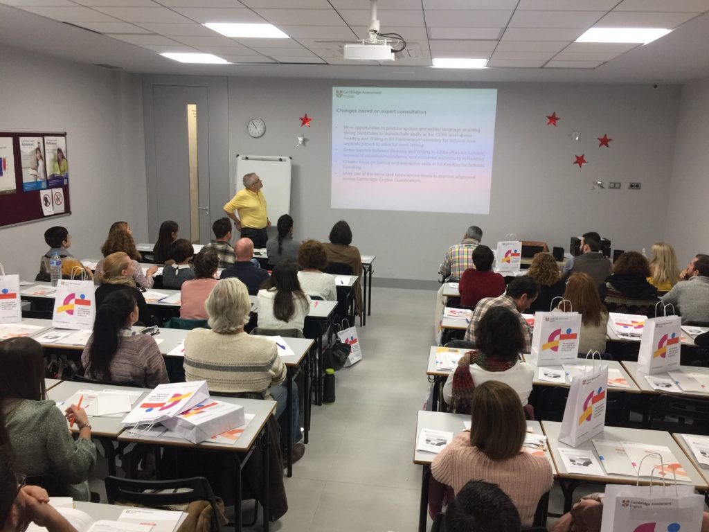 Las plazas se reservaron pocos días después del anuncio del seminario y el aforo quedó completo. Los temas a tratar, “Changes A2 & B1 exams 2020” y “Preparing students for the new listening tasks” , han sido muy bien acogidos por los asistentes.